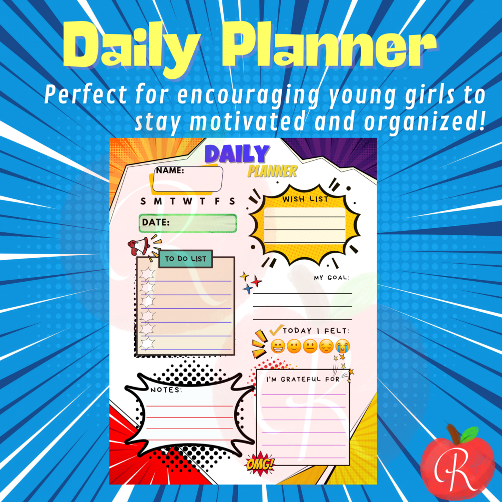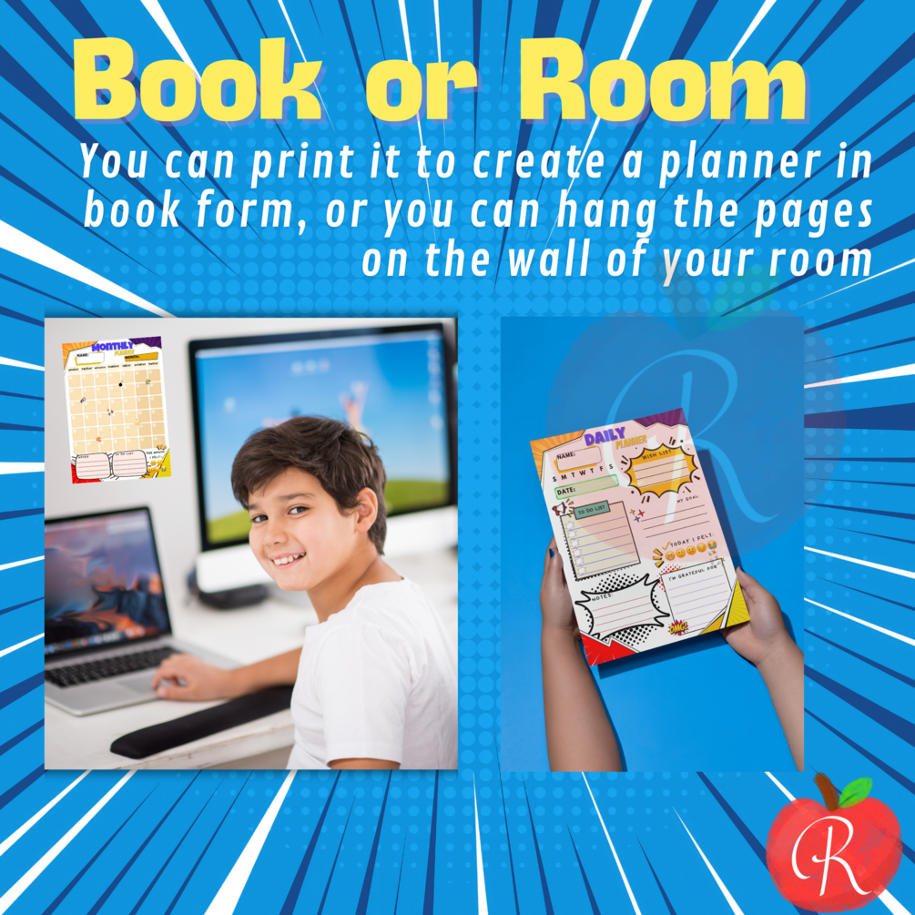 Daily, Weekly, and Monthly Planners | Superhero Comic-Themed | Kids Printable Planner | kid’s planner | Boost self-esteem | mood tracker